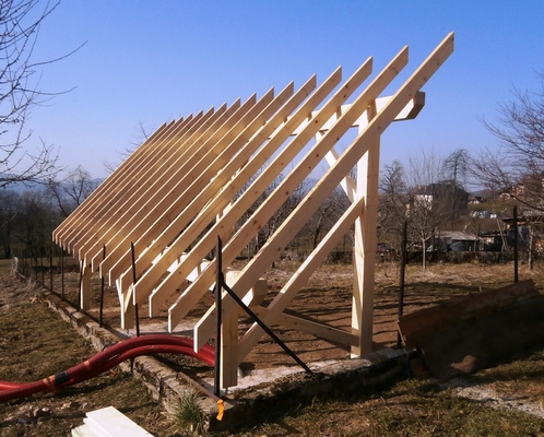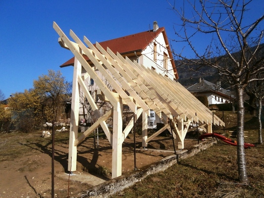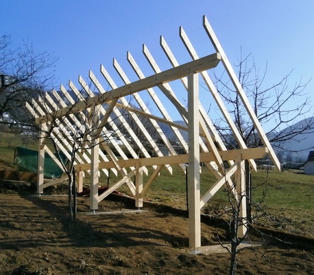 Description du projet : Abris bois support de panneaux solaires thermiques